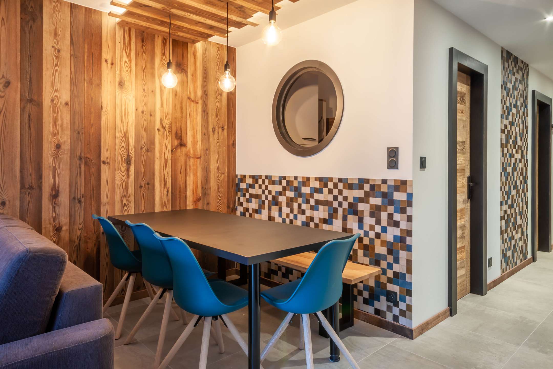 - un séjour avec cuisine ouverte, coin repas et salon avec télévision, canapé-lit pour deux personnes.
