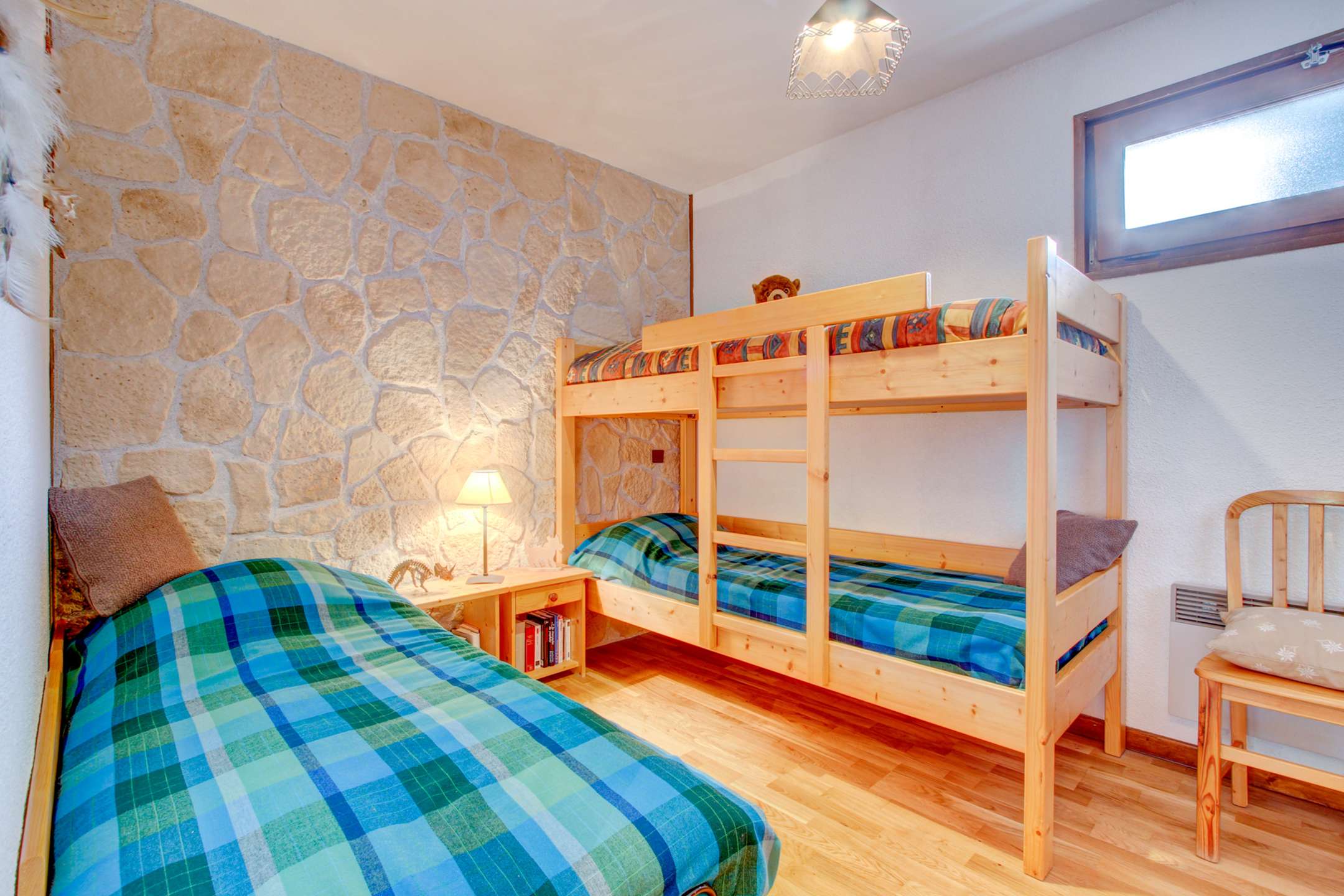 - chambre 1: un lit simple et deux lits simples superposés (80x190cm)
