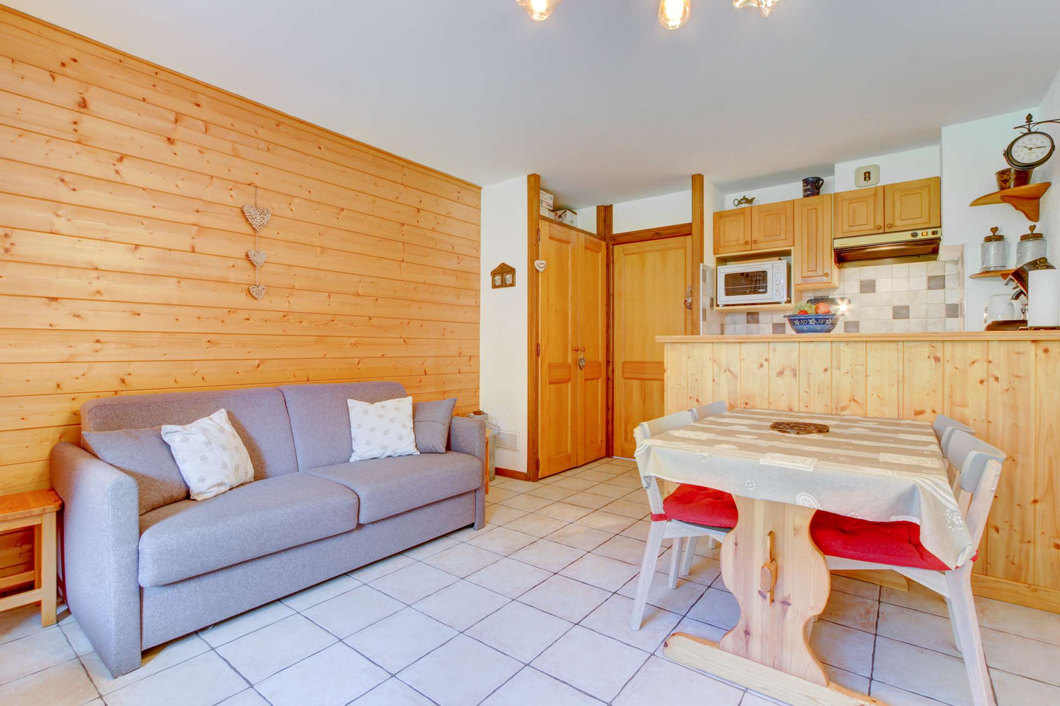 Ce joli 3 pièces est situé à égale distance de la télécabine du Pleney et celle de Super-Morzine. Il peut accueillir confortablement 6 personnes et se compose ainsi :