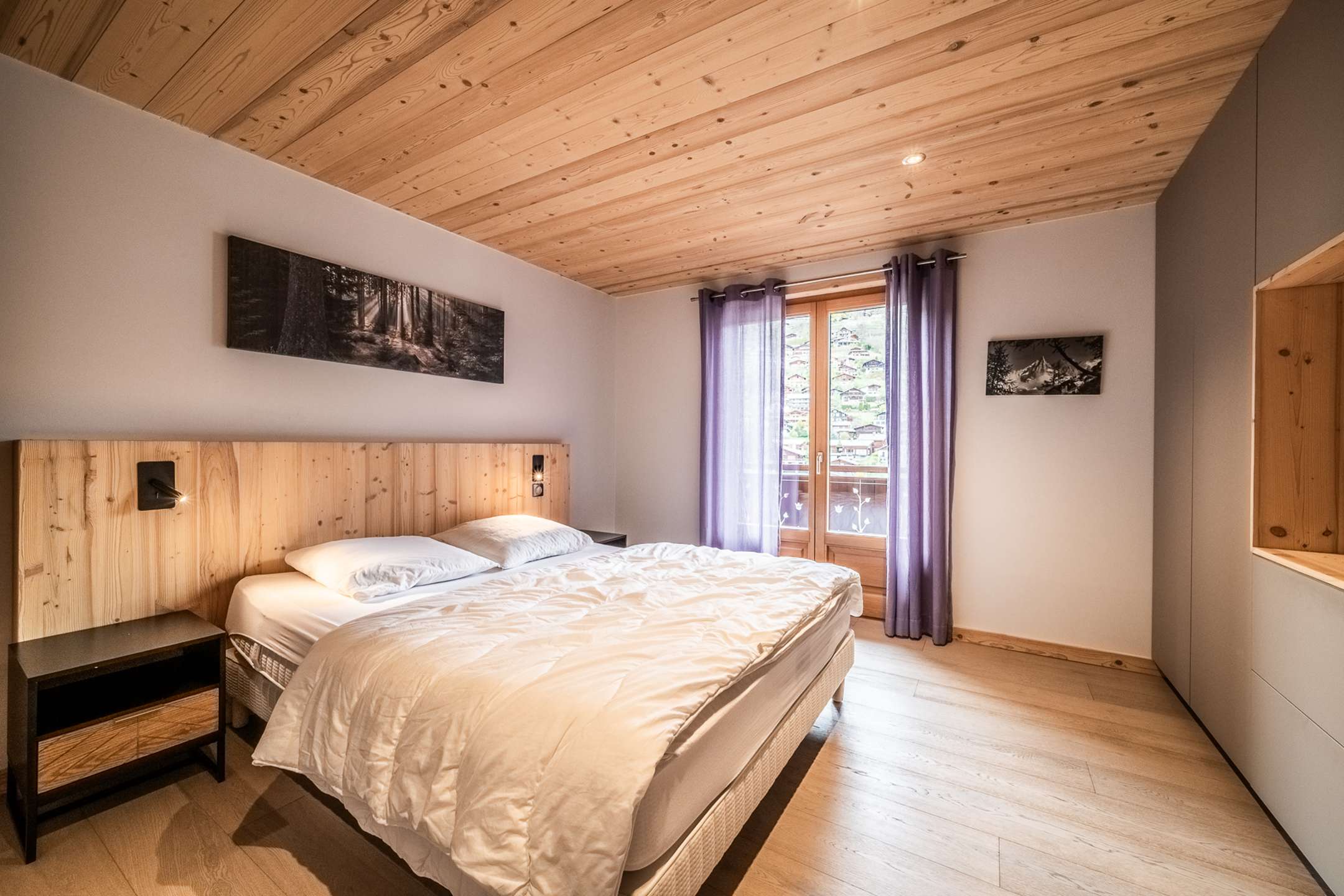 - chambre 1: un lit double (160x200), rangement, accès balcon