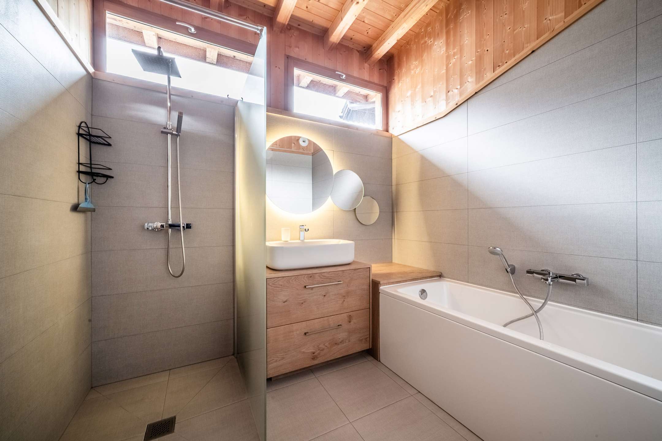 - salle de bains avec une douche et une baignoire