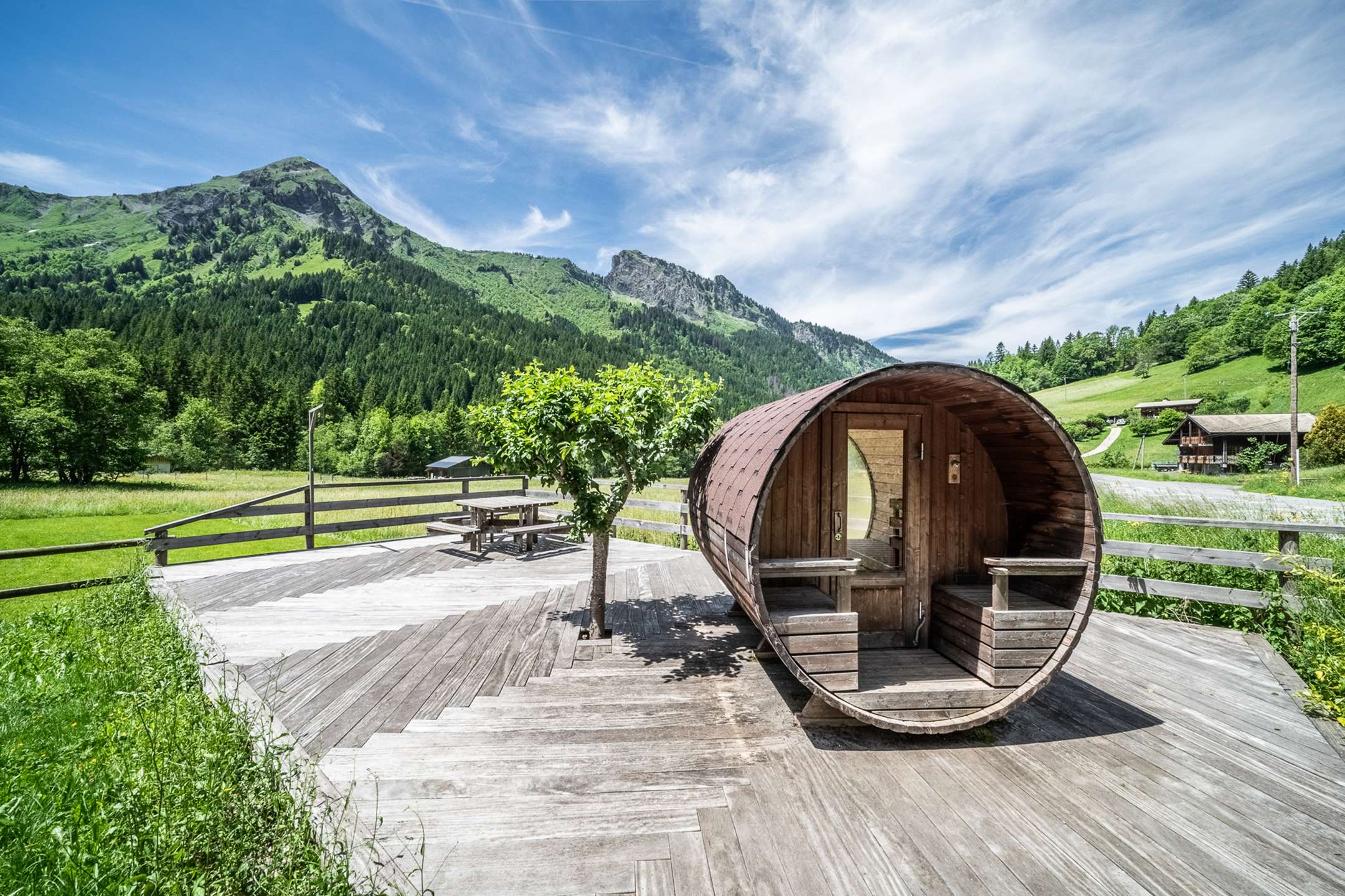 Jardin avec sauna et table extérieure. Barbecue à disposition.
