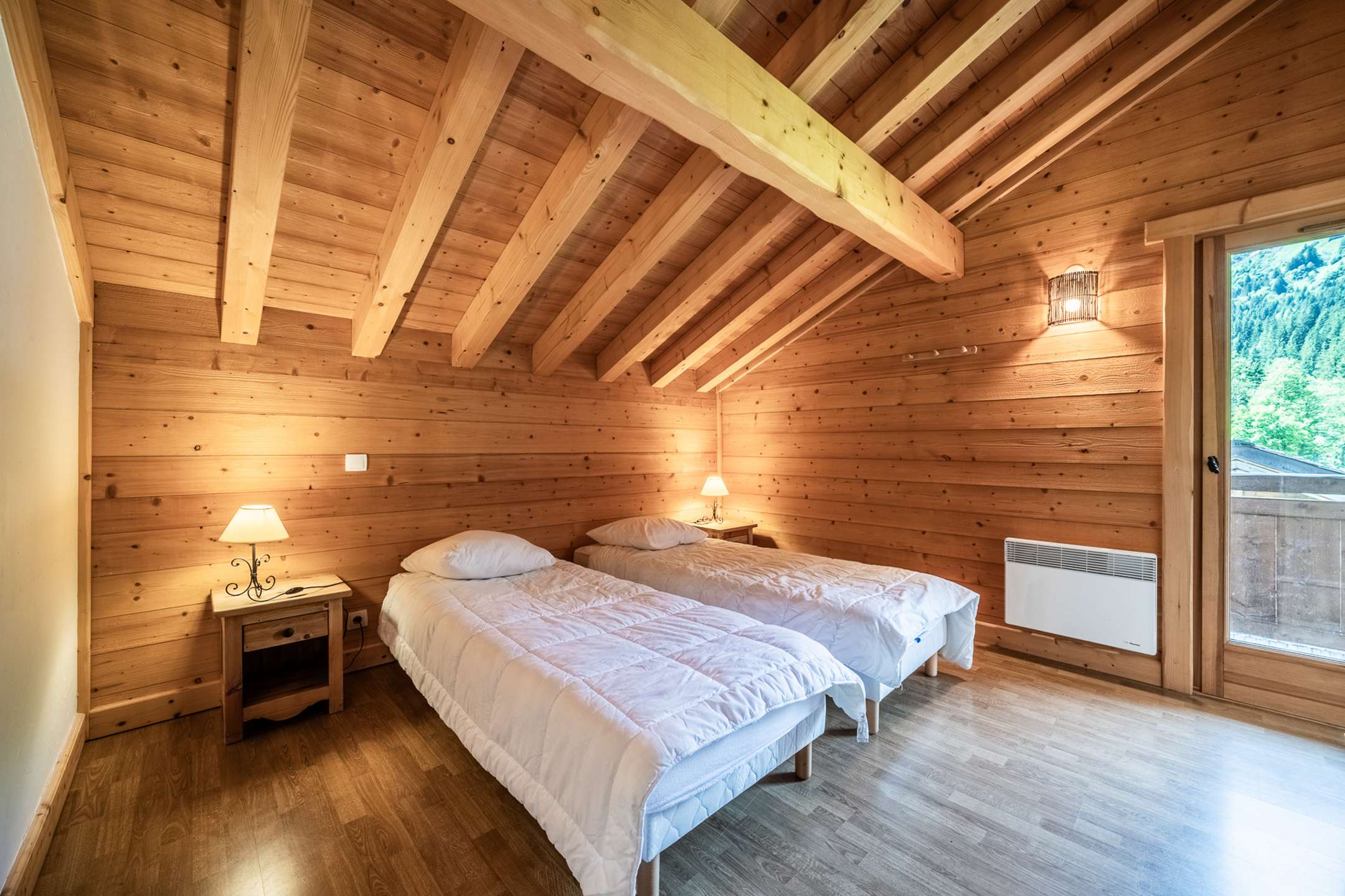 RDC: une chambre avec deux lits simples, salle de douche et WC