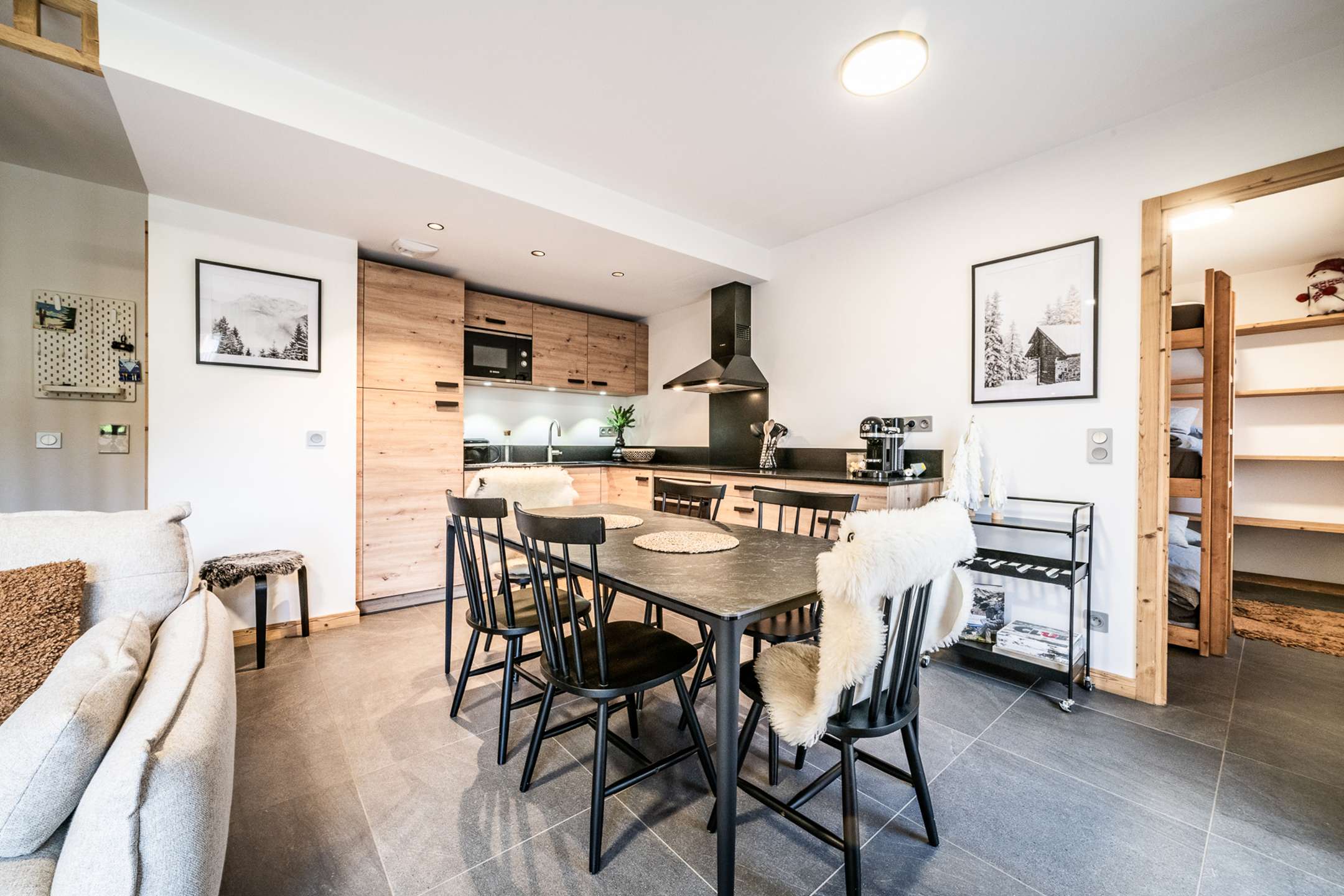 L'Echo du Pleney B004 est un appartement neuf à l'emplacement idéal dans la station à quelques pas de la télécabine de Super-Morzine. Il est au au rez-de-chaussée avec terrasse et peut accueillir 4 à 6 personnes dans sa superficie de 40m². L'appartement est composé de: