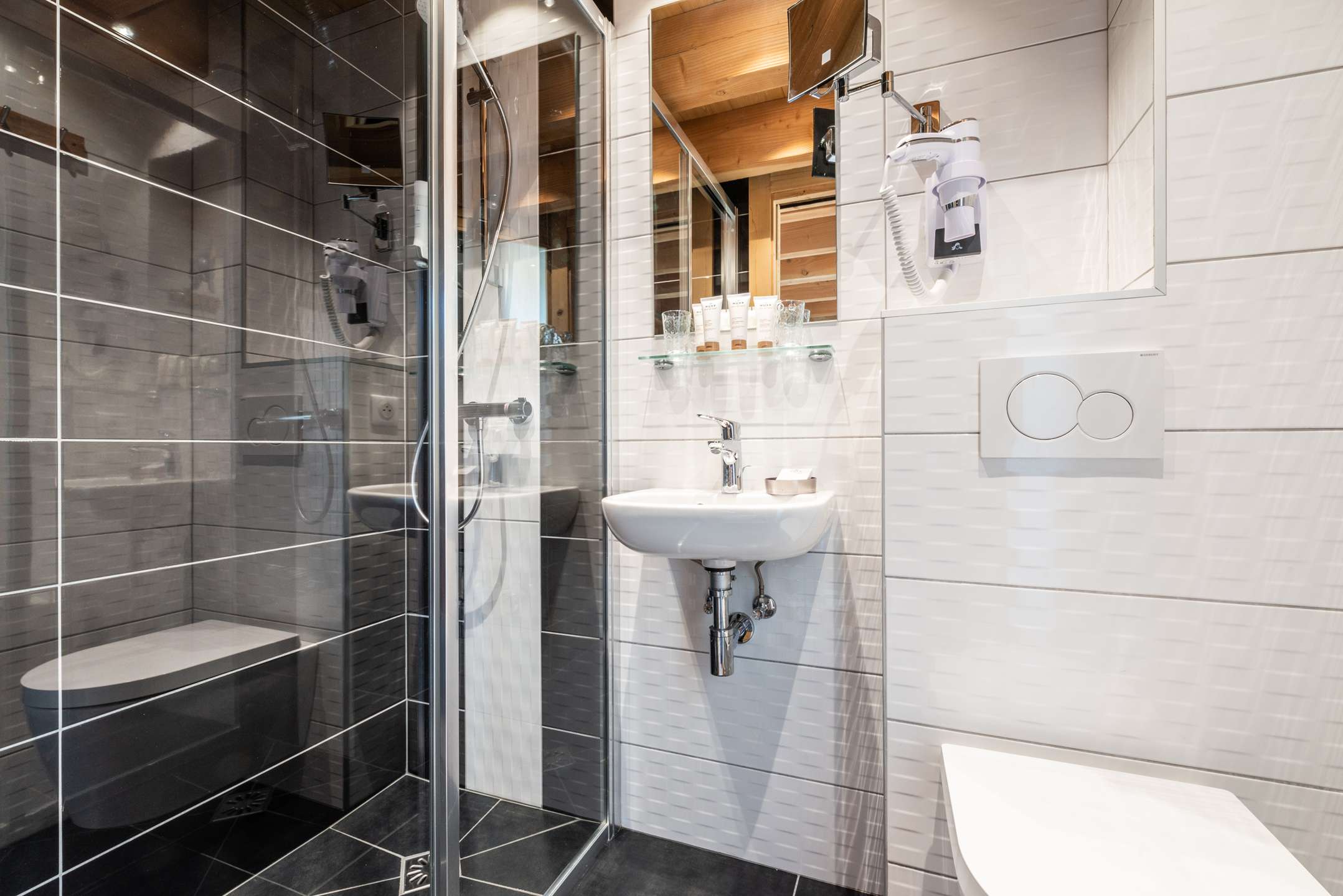 - 3 chambres avec deux lits simples et chacune avec leur salle de douche + WC attenante