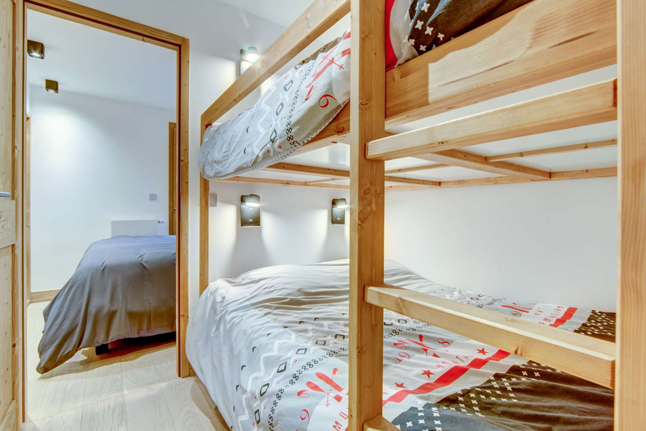 Coin nuit avec deux lits doubles superposés (140x200)