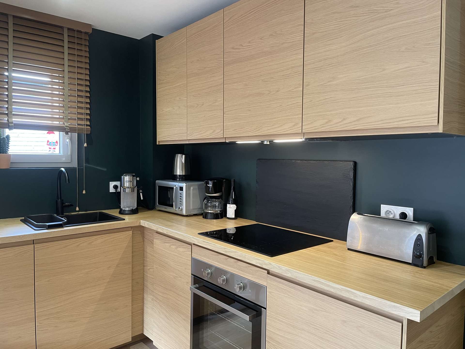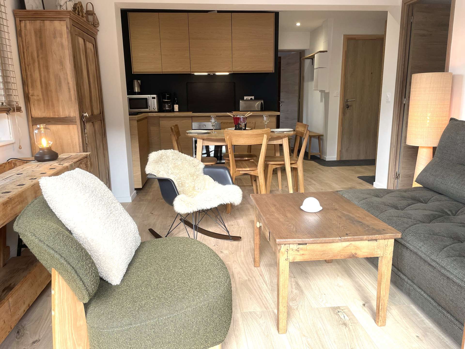 Séjour avec cuisine ouverte sur balcon (un canapé lit d'une personne)