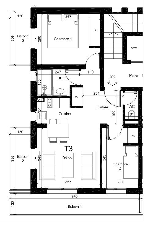 Magnifique appartement deux chambres entièrement rénové au 2ème étage (sans ascenseur) d'une résidence située plein sud et à 300 mètres de l'arrêt des navettes gratuites et à environ 1.2 km du centre du village.