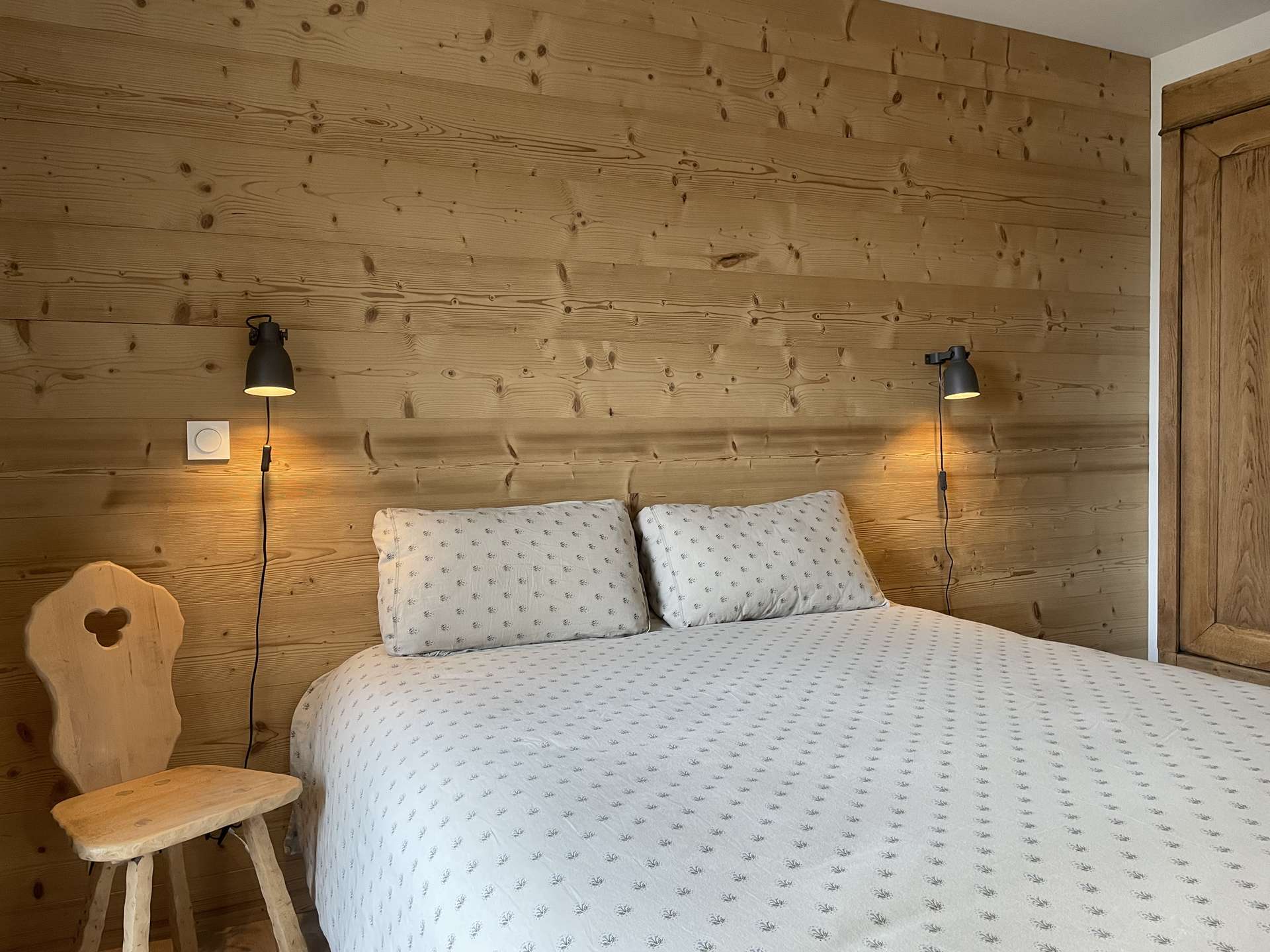 Une chambre avec un lit double