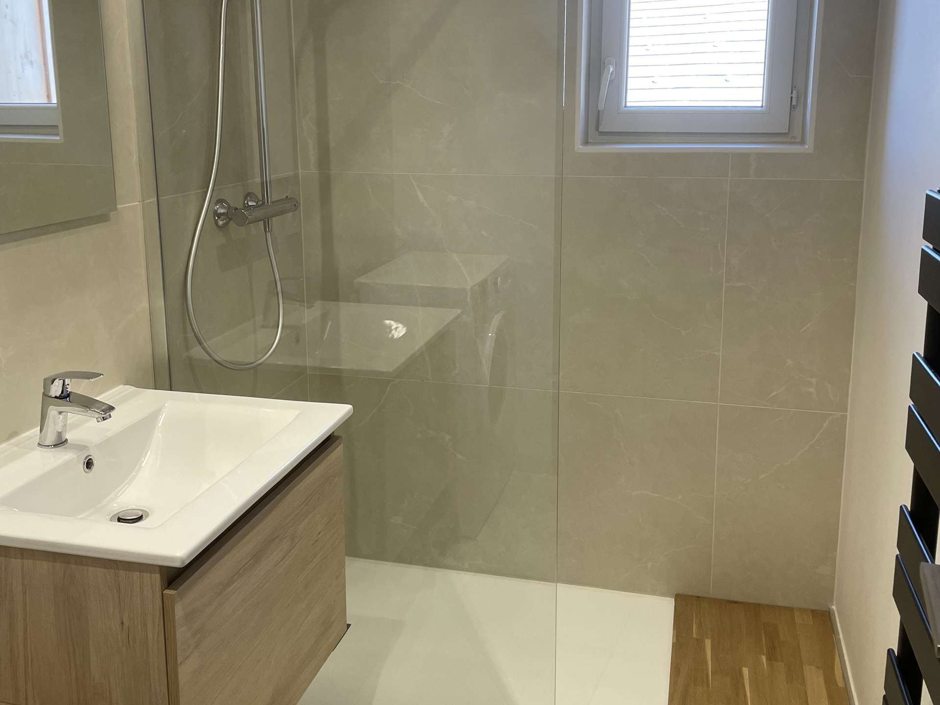 Une salle de douche et un wc indépendant