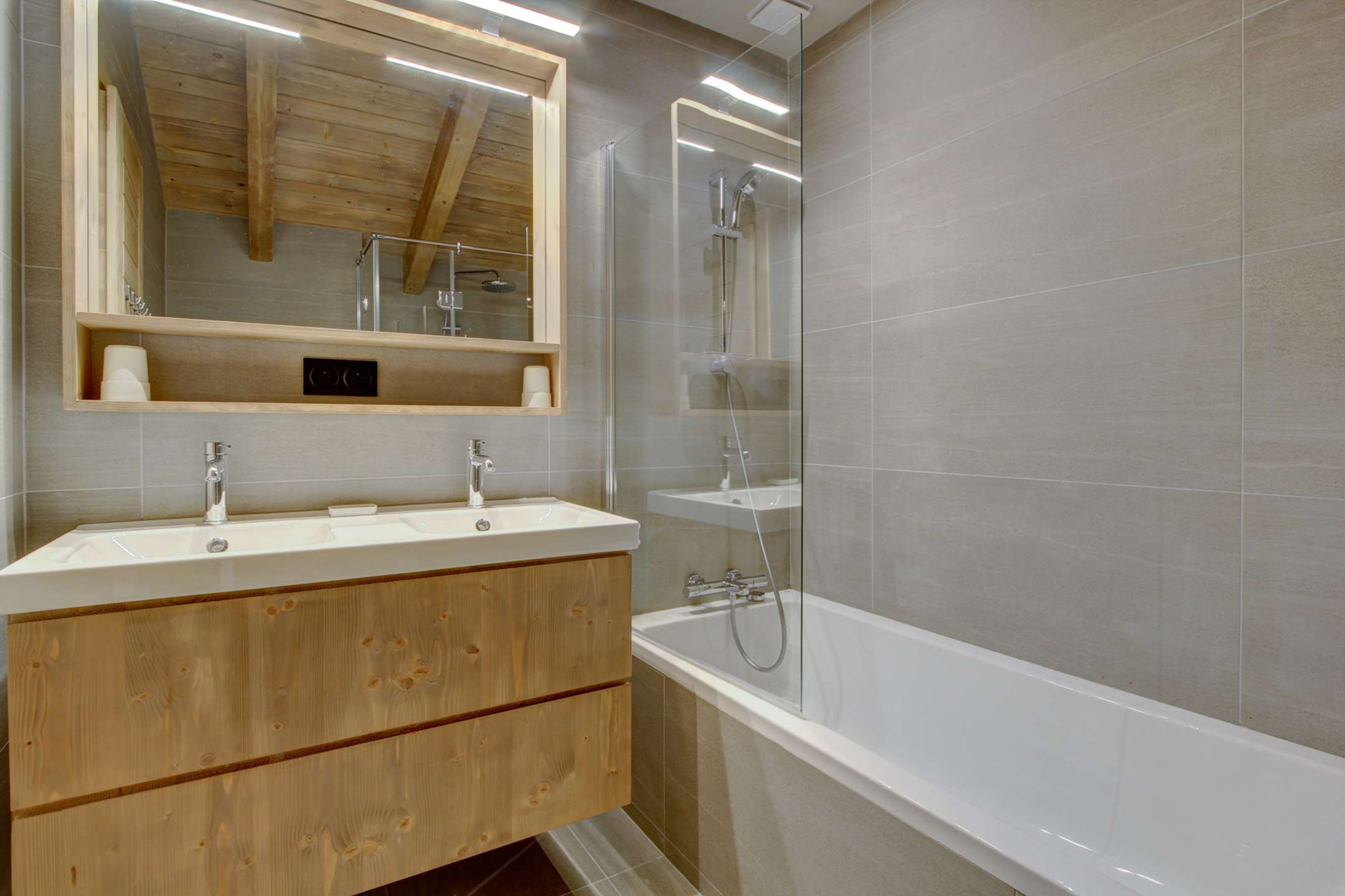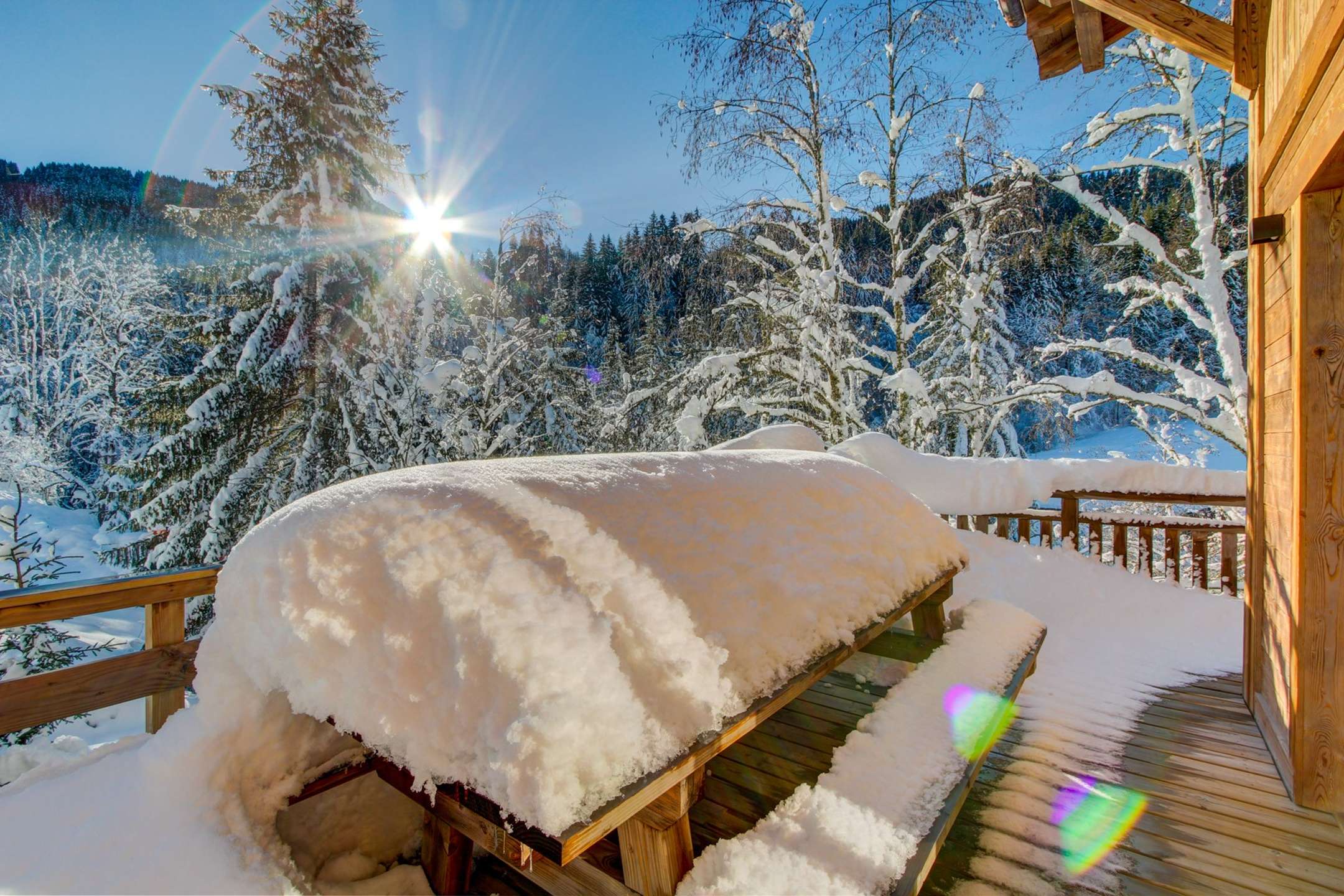 Bien d'exception Chalet neuf de grand standing, composé de 6 chambres et 6 salles d'eau à 5 minutes du centre et à 500m des pistes et du téléphérique de Nyon. Arrêt pour les navettes gratuites à côté du chalet.