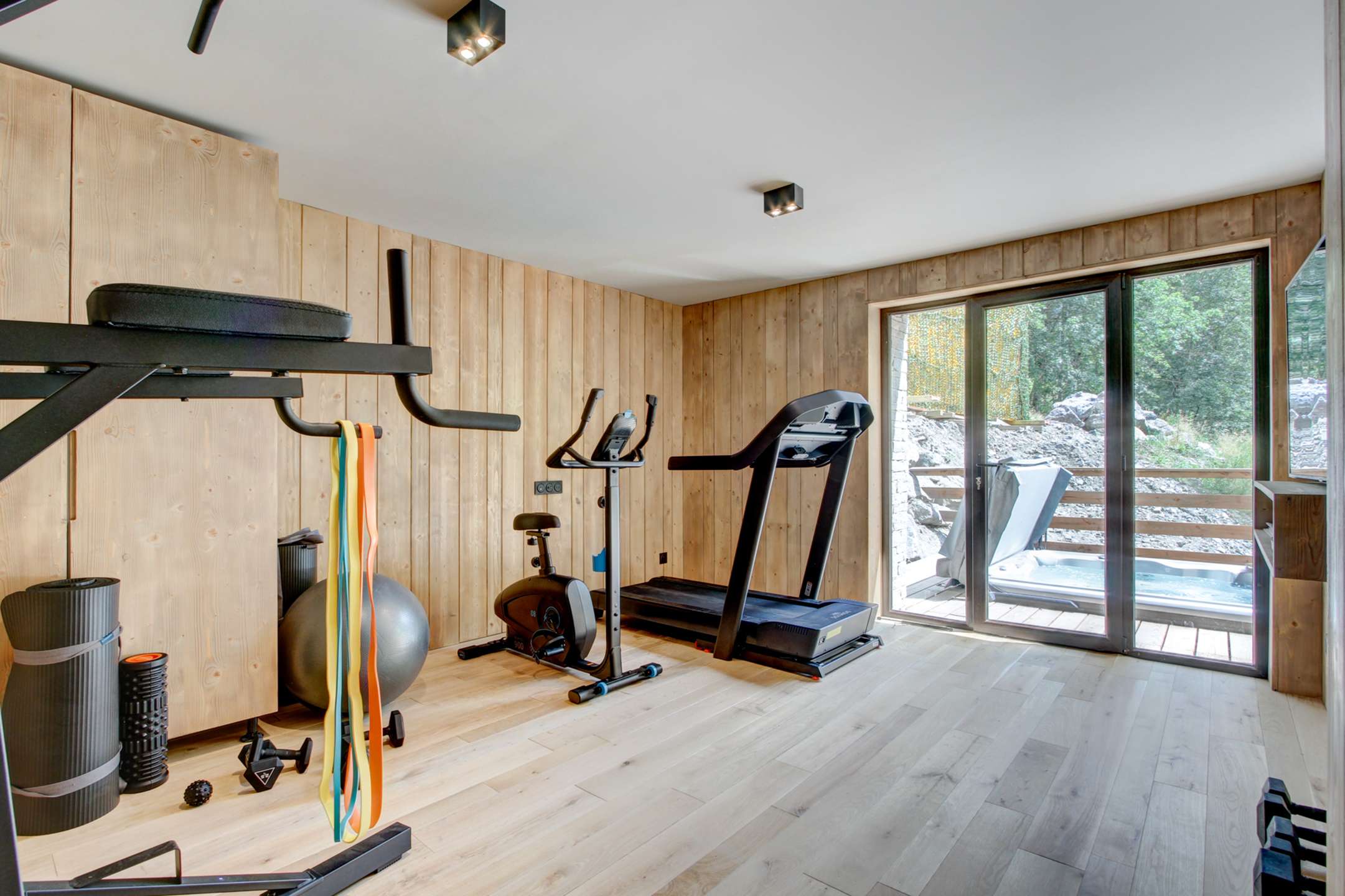 Sauna, salle de fitness, accès terrasse avec spa, buanderie équipée lave-linge + sèche-linge