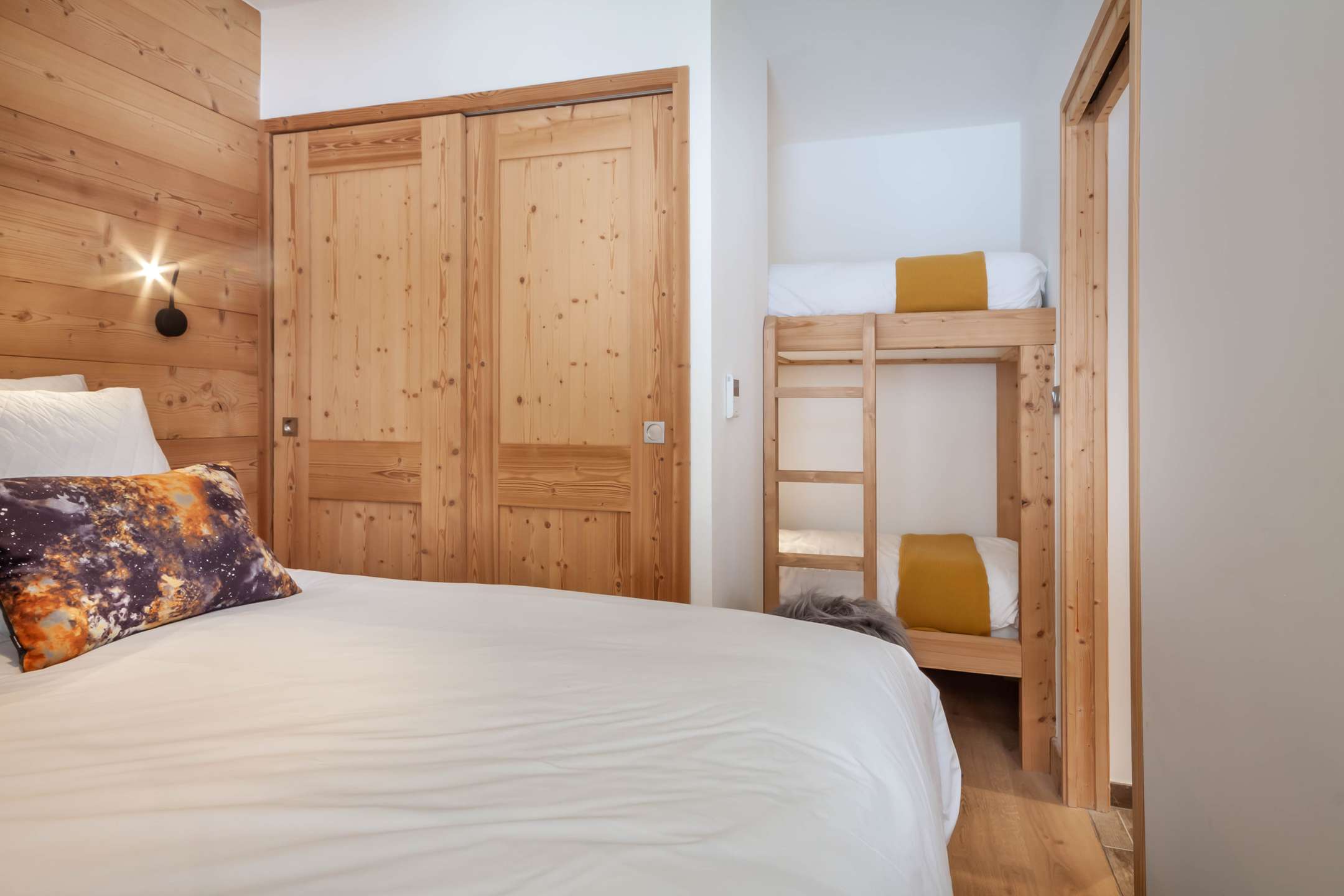 - chambre 1 avec deux lits simples rapprochés, coin nuit avec deux lits superposés
