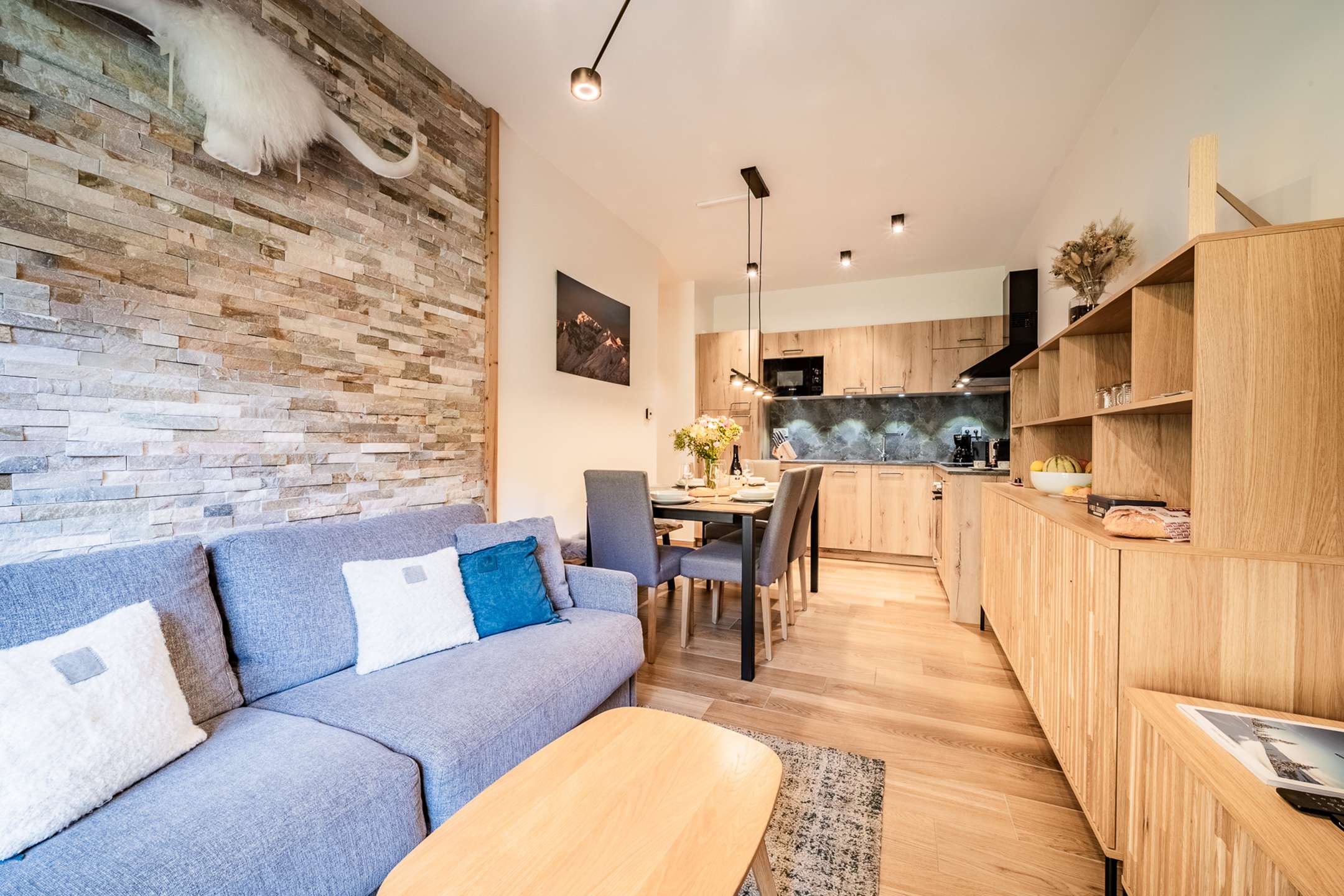 - Equipped kitchen, lounge area with TV (french and international chanels) and sofa-bed for two