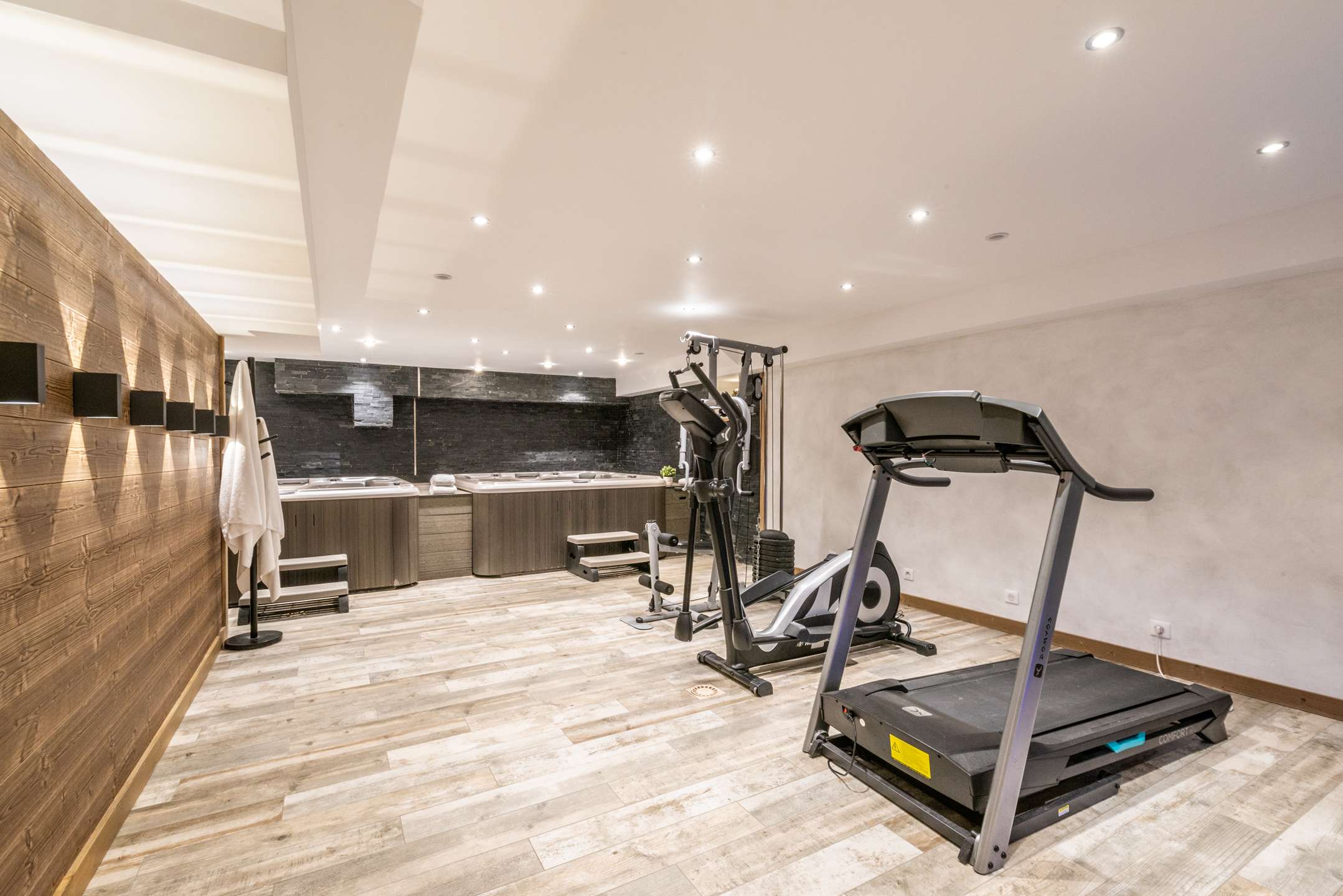 Wellness area with hot tub, sport machine, hammam, shower, wc