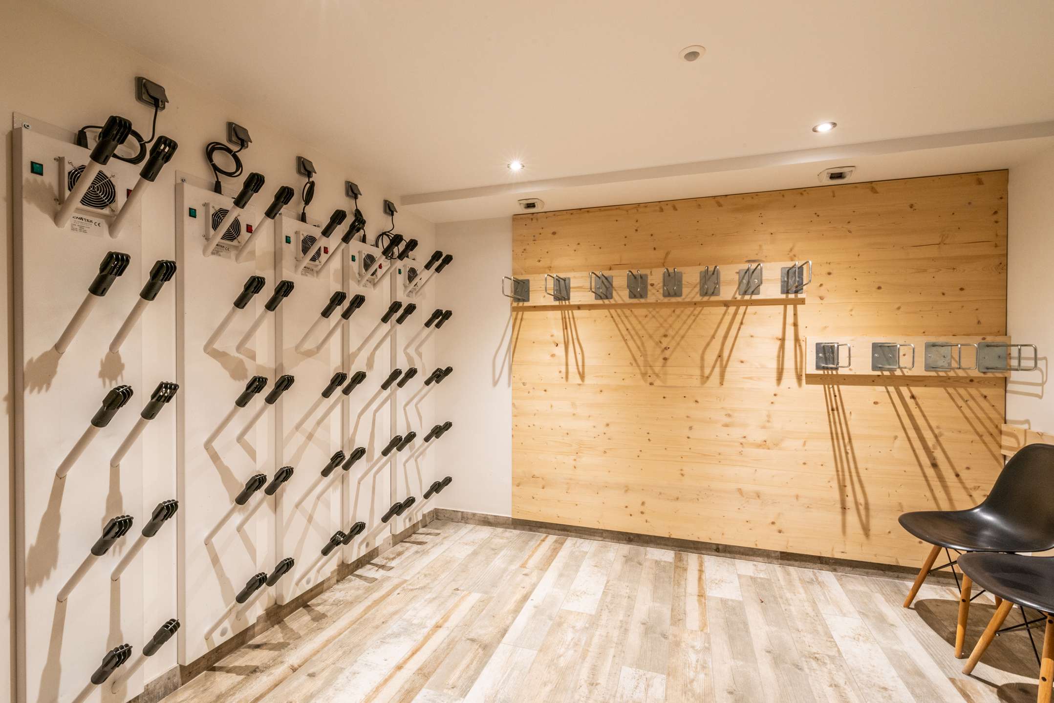 Ski/bike room, utility room with washing machine and dryer