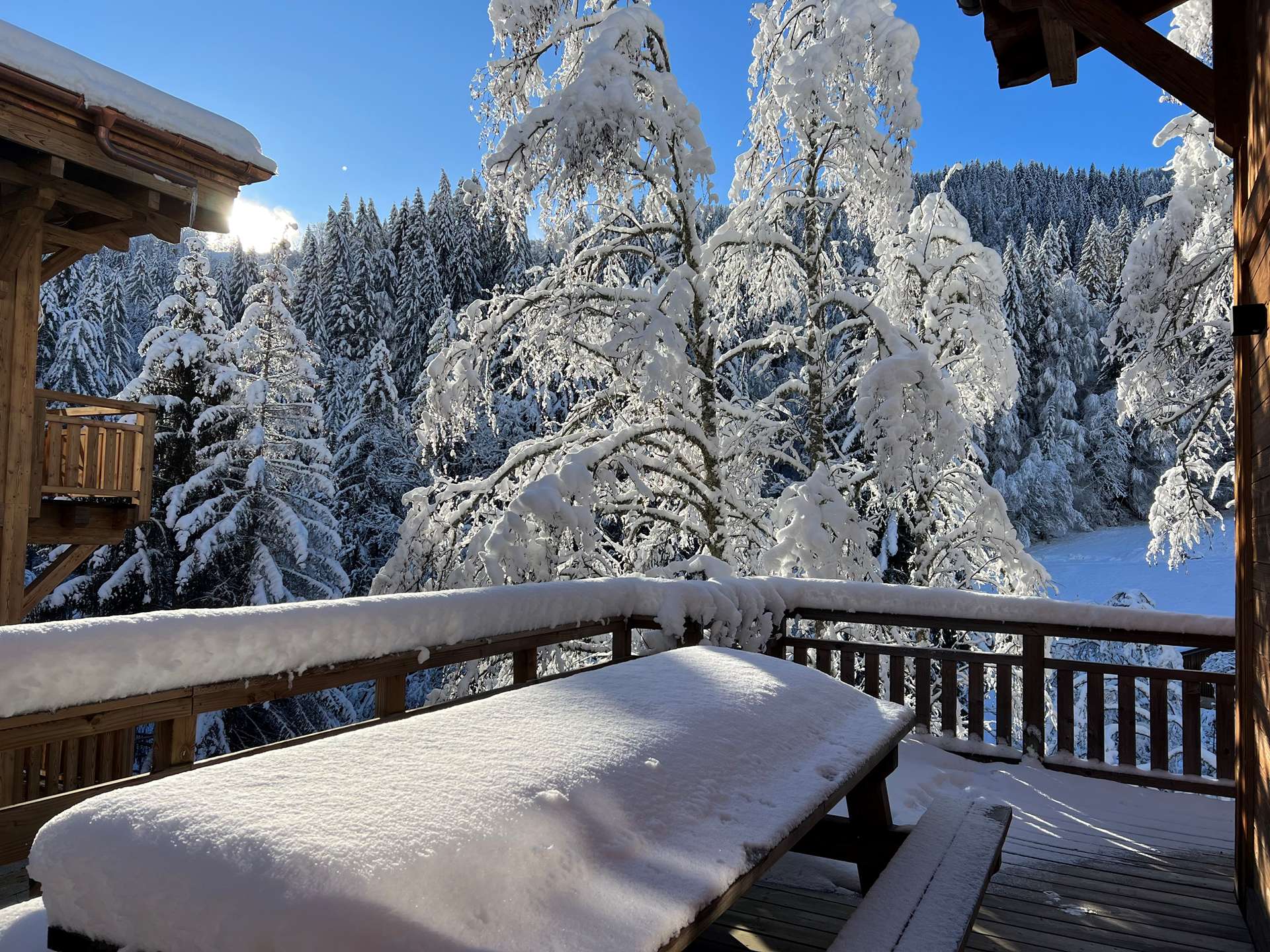 High standing brand new chalet comprising 6 bedrooms and 6 bathrooms, located only 5 minutes from the centre and 500 meters from the ski slopes and Nyon cable car (Morzine-Les Gets ski area). Ski bus stop right next to the chalet.