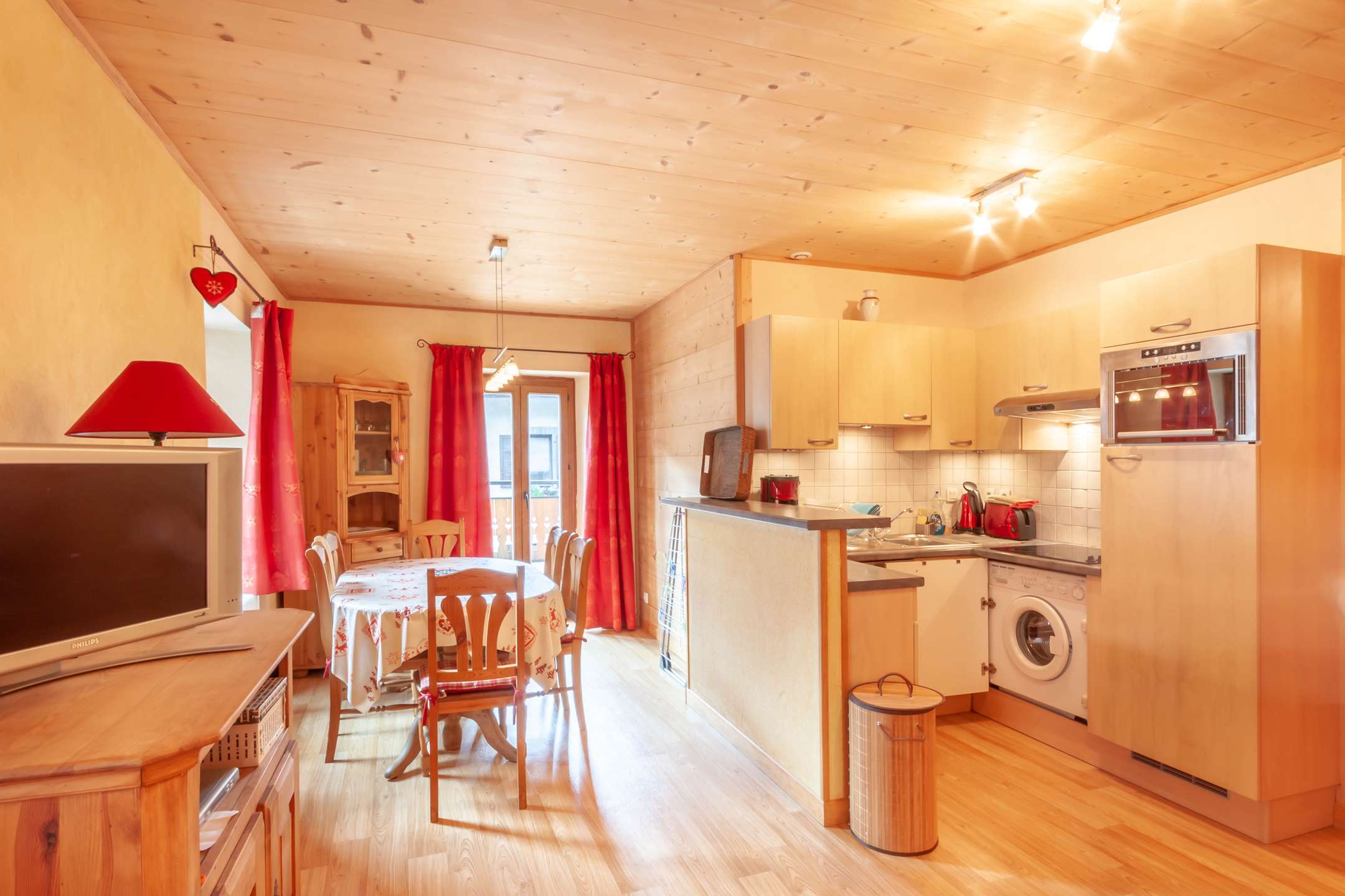 - living room with equipped kitchen, lounge area with TV, sofa-bed for two, access to the large south exposed terrace, with garden table and chairs